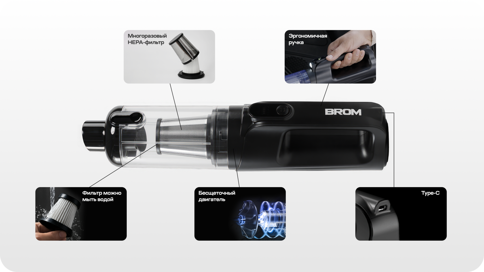 Эти возможности делают БРОМ многофункциональным устройством, удачно решающим многие проблемы водителей. Он удобен в поездке на работу, на пикник, на рыбалку, быстро очистит салон от песка, крошек, сигаретного пепла.